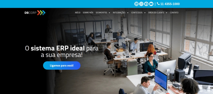 Site projetado para A DBCorp (dbcorp.com.br) é um software de ERP (Enterprise Resource Planning) focado na gestão integrada de indústrias e distribuidoras.